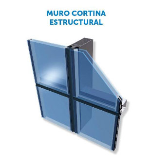 Muro cortina estructural: Perfilería oculta por el exterior. Los vidrios se sujetan a la estructura portante mediante grapas colocadas directamente al intercalario del vidrio.