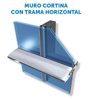 Muro cortina de trama horizontal: Posibilidad de alas tipo avión en vertical.