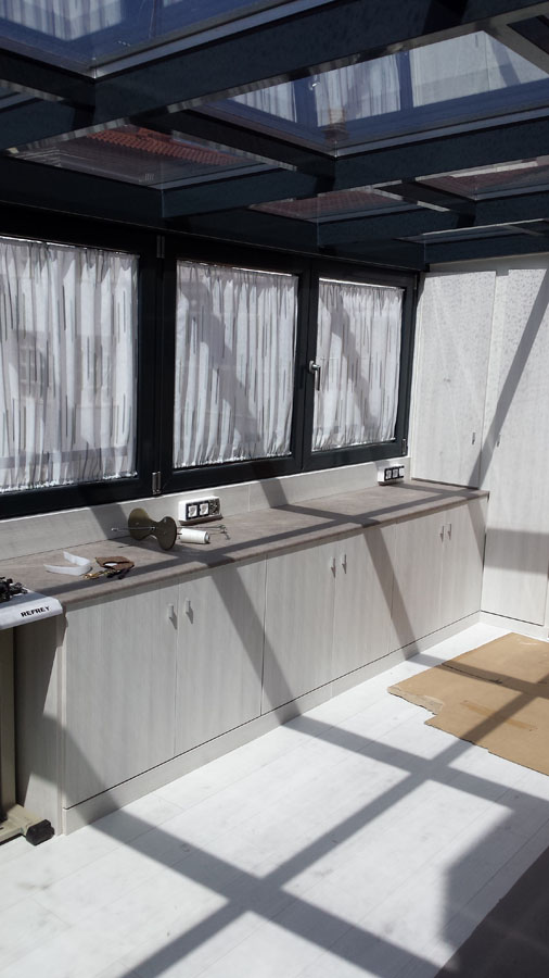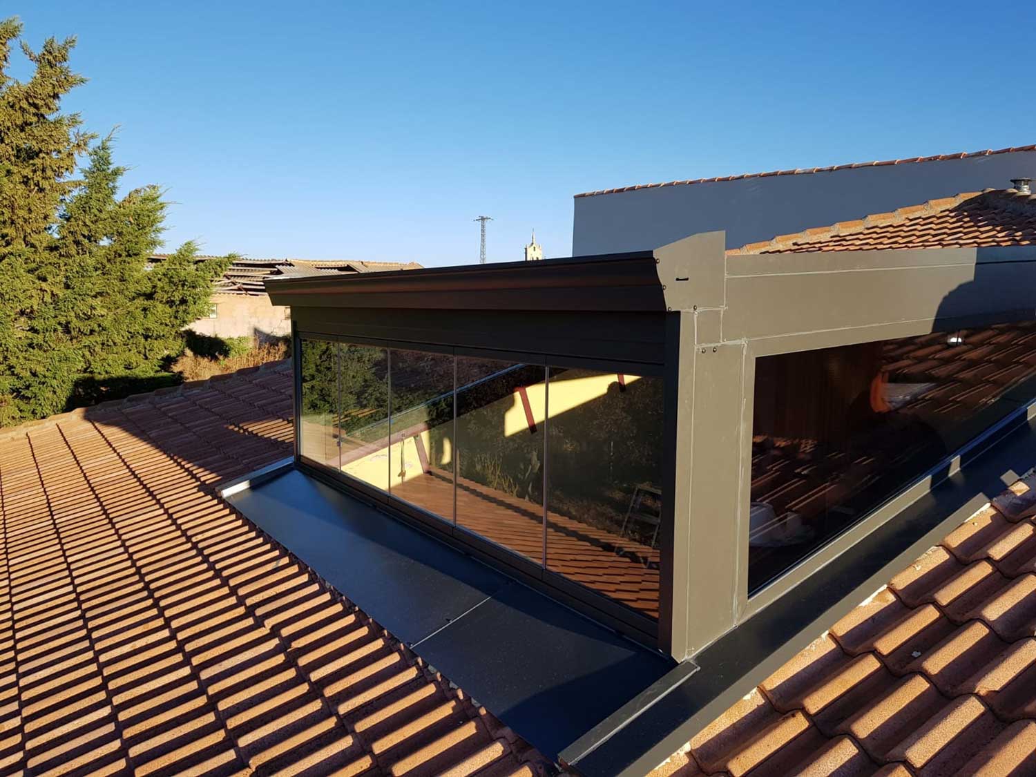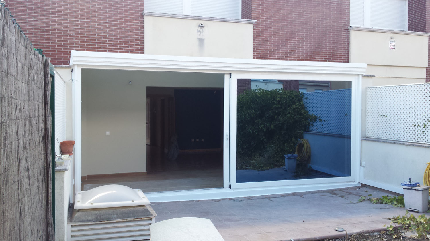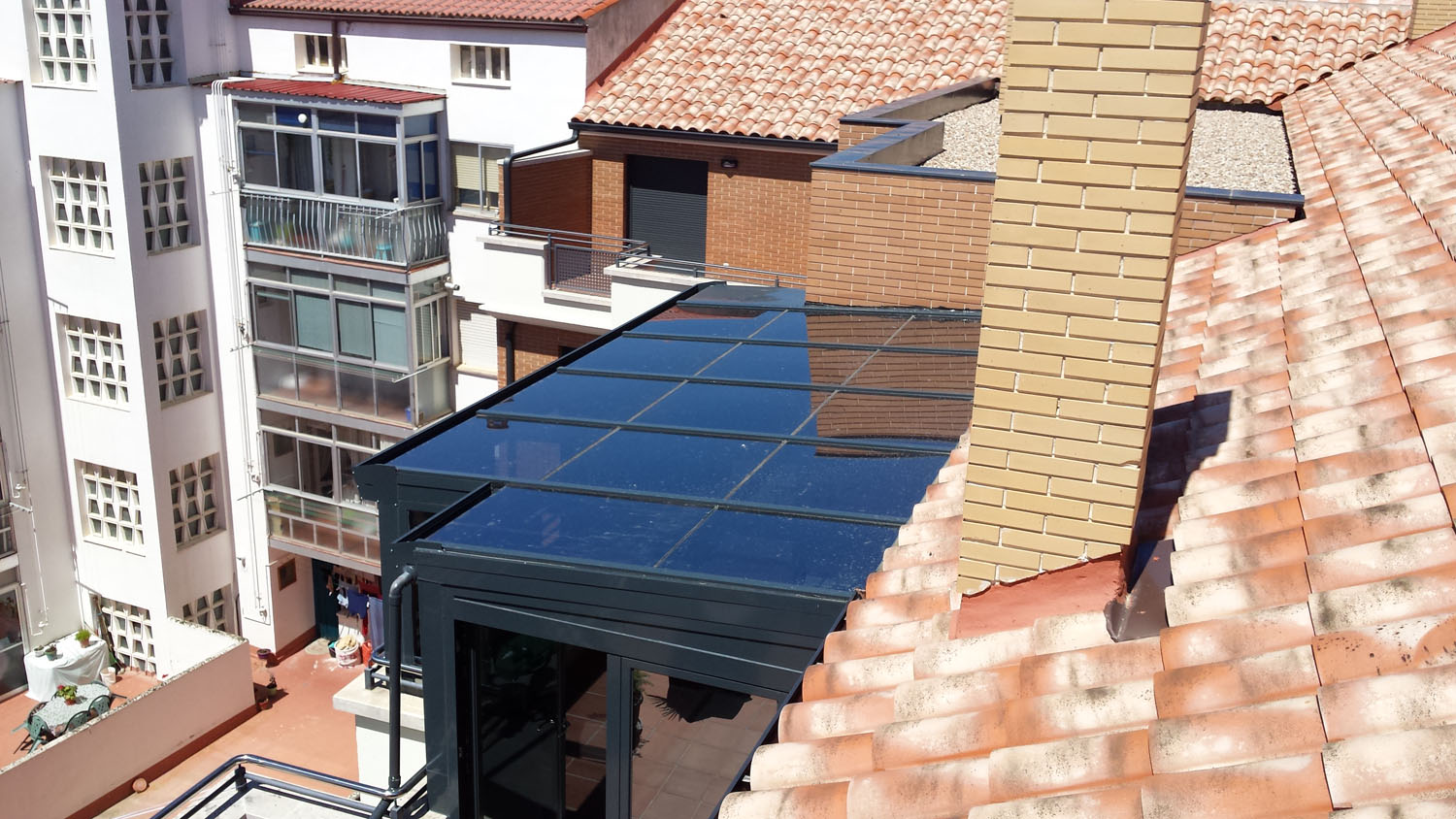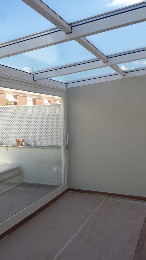 OBJETIVO: Sustitución de antiguo cerramiento no utilizado porque estaba realizado con materiales no aislantes (hierro y policarbonato) por el techo de vidrio para crear una zona de salón totalmente habitable.