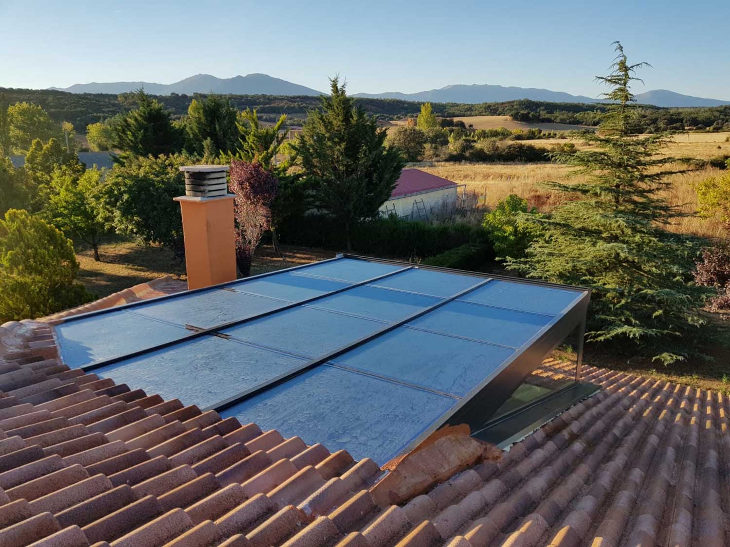 OBJETIVO: Debido a que el salón de la vivienda tenía un tamaño insuficiente, el cliente quiso ampliar dicha estancia sin restar luz con este sistema. Esta obra es un ejemplo de que los techos de vidrio de Aluarte Aranda forman espacios totalmente habitables en cualquier época del año.